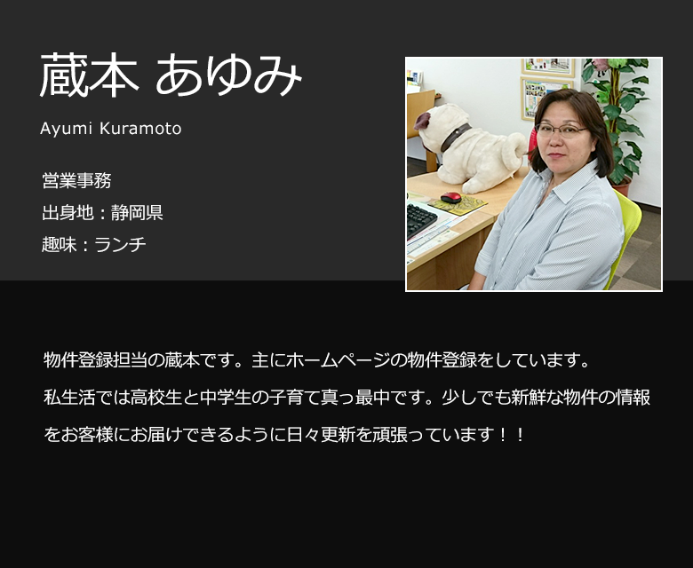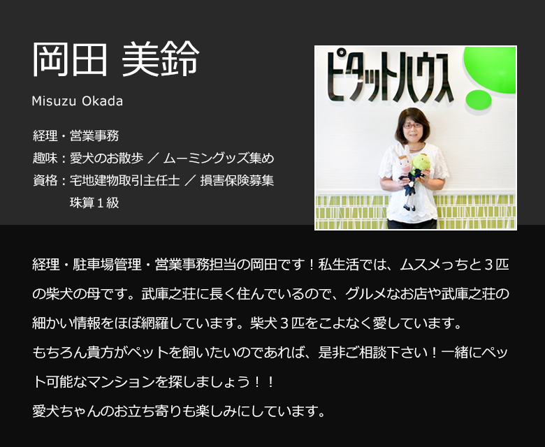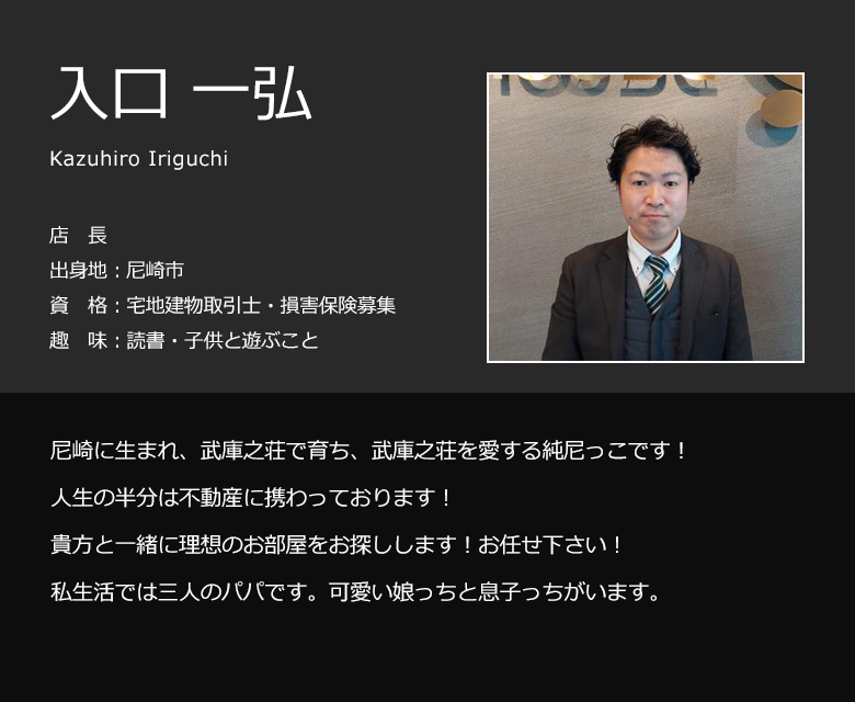 これまで地元密着でつちかった豊富な物件情報量をもとにお客様の立場にたって、よりご希望に合った物件を必ずご紹介いたします。武庫之荘店はまかせて安心!をモットーにスタッフ一丸となって尼崎市・伊丹市の賃貸物件・仲介・運営管理をやっています。アットホームな雰囲気でお客様をお迎えします!インターネットには掲載されていない物件、最新情報、住宅に関するお問い合わせ、お気軽にお待ちしております。 店舗・事務所探しも当社にお任せ下さい!